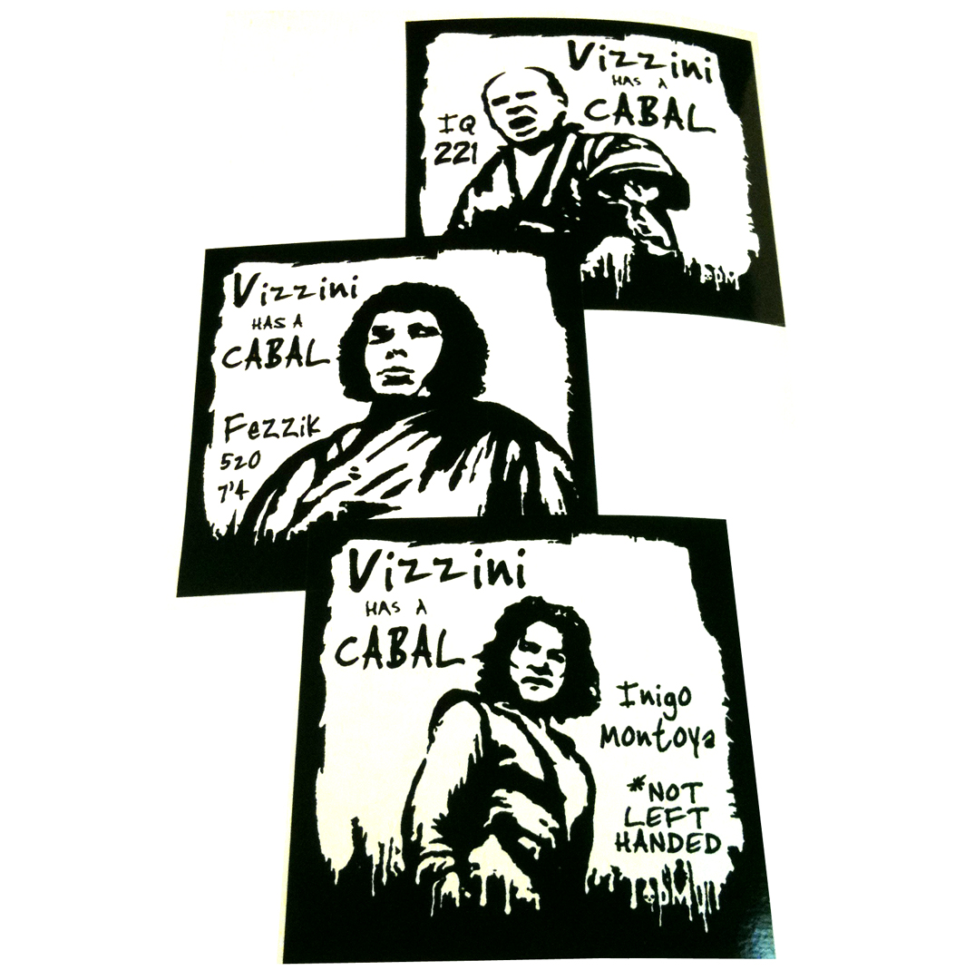 Vizzini Has A Cabal - Vinyl Sticker 3 Pack - Princess Bride Tribute mashup Not Obey
