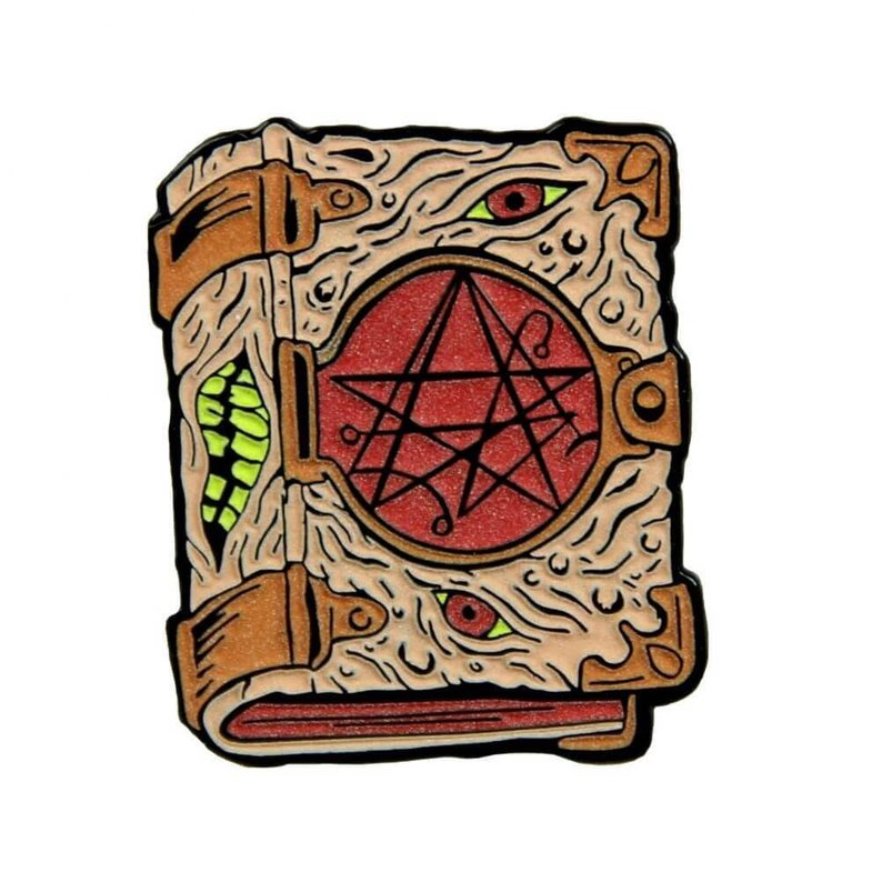 The Necronomicon enamel pin features glow in the dark soft enamel colors, a double black rubber clutch, backing card and is 1.5″ tall.