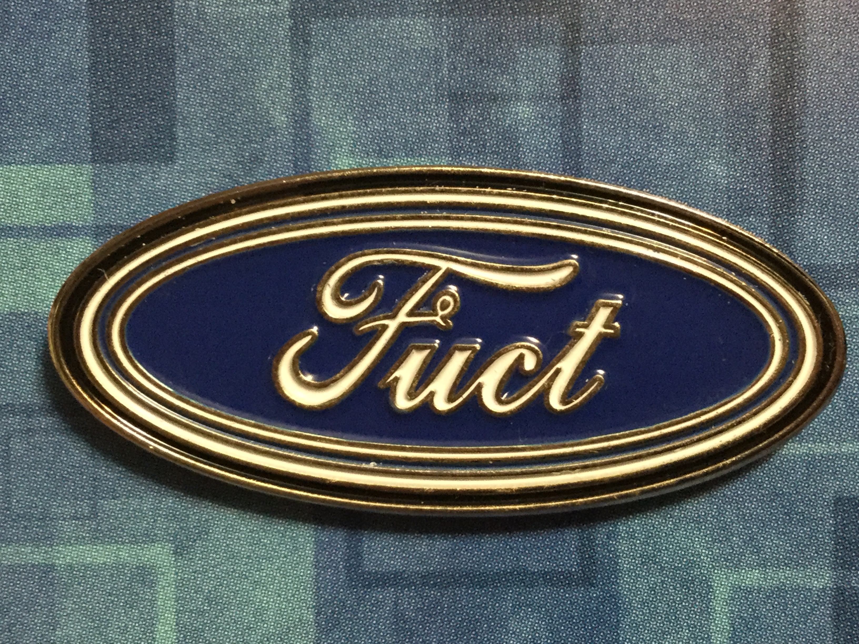 The classic bygone skate company logo FUCT in enamel pin form. Rebooted by emDUB.