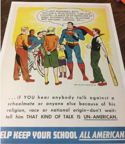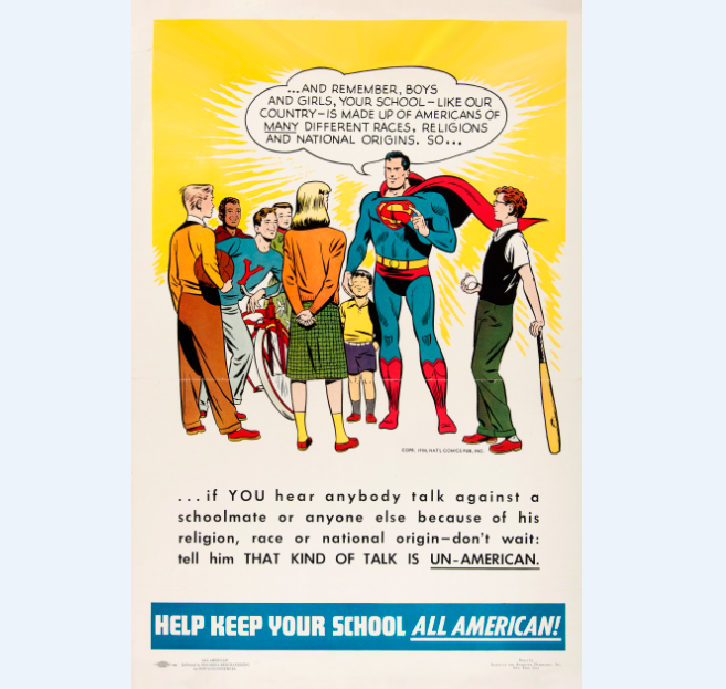 This is a new reproduction print of a vintage poster design issued by the Institute for American Democracy, INC. in co-operation with National Comics Publishing INC. in 1950.